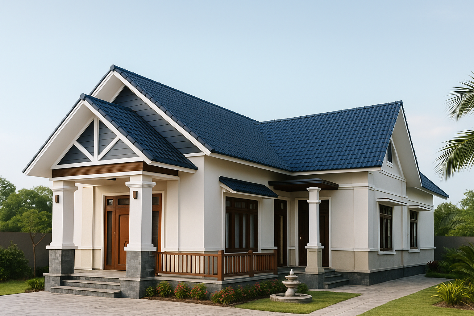 Xanh Cát Tường mang sắc thái dịu hơn, thiên về sự thanh thoát. “Cát Tường” thường được hiểu là thuận lợi, suôn sẻ. Vì vậy, màu sắc này tạo nên cảm giác dễ chịu về thị giác, phù hợp với các công trình cần sự nhẹ nhàng, không quá nổi bật nhưng vẫn có điểm nhấn riêng.